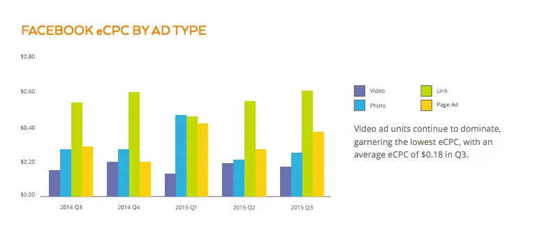 A report by Kinetic Social showed that video ads have the lowest cost-per-click, with an average CPC of $0.18