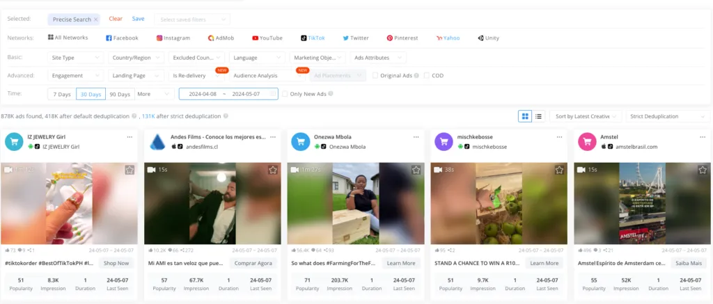 You can also filter TikTok on BigSpy, and I recommend sorting by the latest creative, so you can analyze the latest product types on TikTok and their creative types. Based on your extensive experience, you can initially save some ads that you think are not bad, and after a period, you can look at their data again to help you determine whether this product is a trending product.