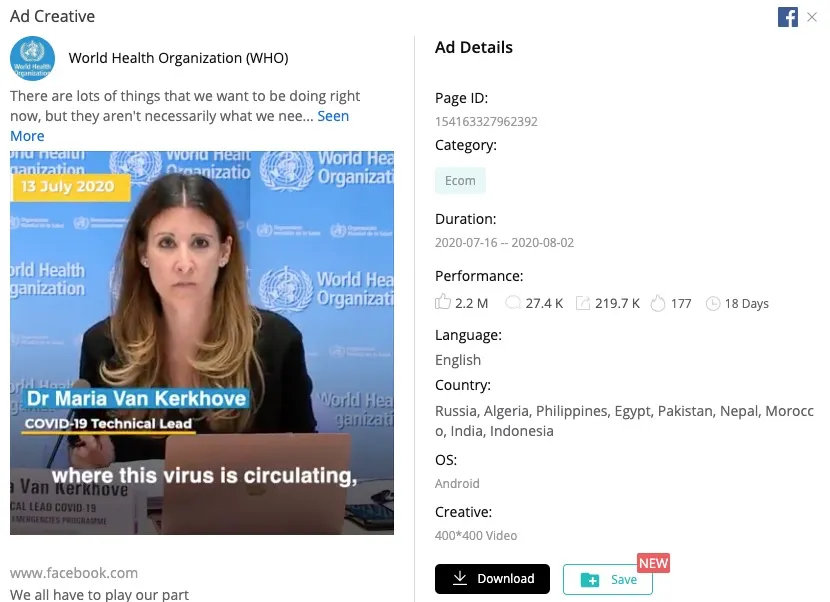 I think that when you think of 2020, you will definitely think of COVID-19. In such a social environment, the World Health Organization (WHO) advertisements about virus information will definitely stimulate everyone’s nerves. A one-minute message about The virus warning and prevention video received 219.7k shares and 2.2M likes in just 18 days.