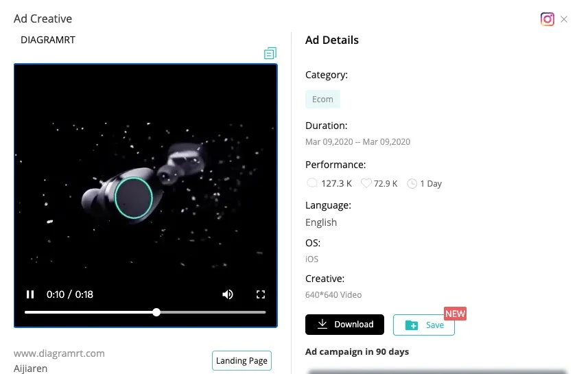 Following Apple's drag-out of wireless Bluetooth headsets, wireless Bluetooth headsets have become the most popular item for electronic devices in 2020. How can they become a dark horse in such a trend and stand out in many social media advertisements? A textured creative is the key. This is an advertisement for wireless earphones published by a small advertiser on Instagram. The 18-second content reflects the super high quality of earphones. For example, they are not afraid of water, they are comfortable to wear, and can be used as sports earphones. Easily capture the favor of users. Become the most popular advertising material in 2020 that surpasses many big names.