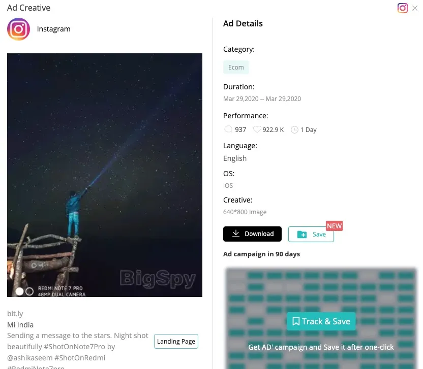 Xiaomi began to expand overseas markets in India in 2015, and to this day, Xiaomi has been the top-selling smartphone in India for three consecutive times. In marketing, Instagram is a social media channel commonly used by Xiaomi to publish advertisements. This is Xiaomi's most successful advertising creative material in 2020. The whole photo did not highlight the mobile phone. Under the vast sky, we used the speed of light to illuminate the sky. We may not understand its meaning just by looking at the picture. But the annotation added to the picture is "Sending a message to the stars". It highlights the high performance of Xiaomi phones.