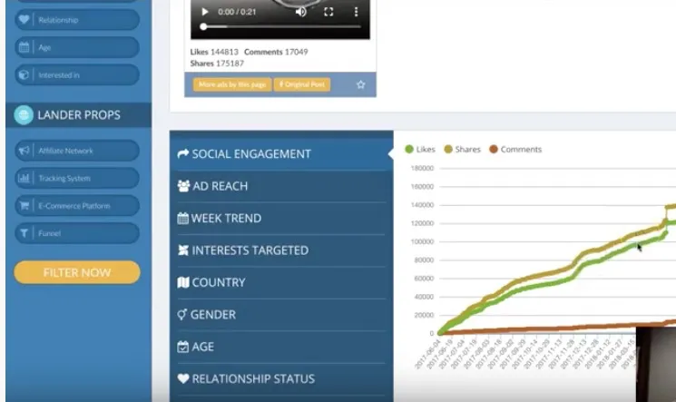 Adsector is an online tool. After registering and logging in to the website, we enter the main interface. This is a neat and easy to use homepage. The left side of the page contains various filter boxes. You can see that Adsector is divided into three main modules, namely search mode, filter mode, and lander. Below we will compare the search and filtering functions in detail.