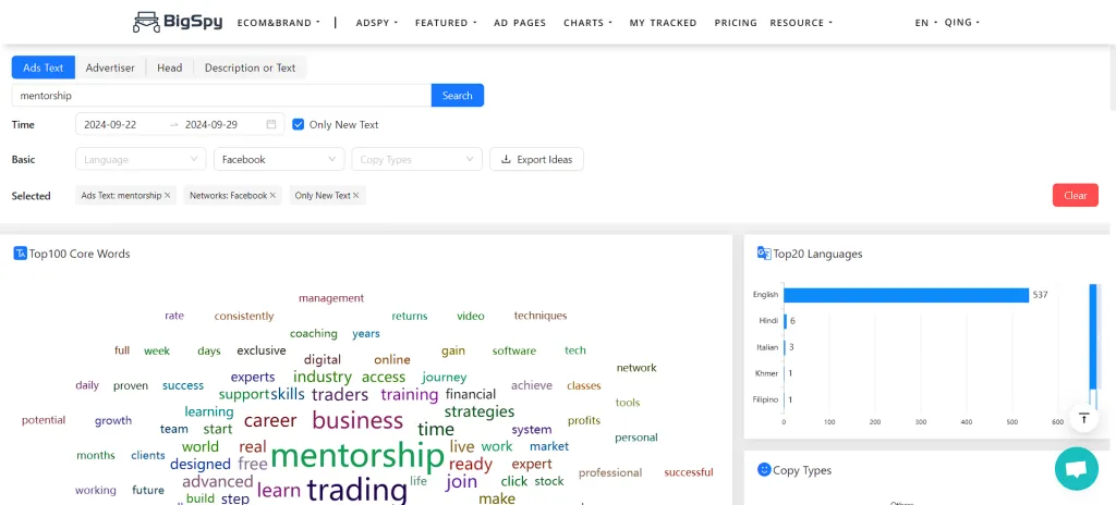 When making Facebook ads, writing ad copy is also a headache. BigSpy helps users find the most suitable advertising copy by searching and filtering.