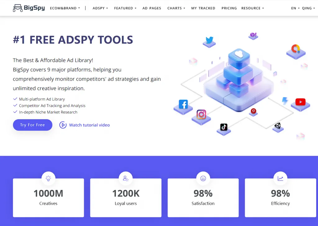 As an online platform, BigSpy offers a user-friendly interface that is divided into several key modules: Ad Spy, Copy Analysis, Ad Tracking, Homepage Analysis, and Trending Rankings. This versatile tool enables users to stay ahead of the competition by monitoring the latest advertising trends, optimizing their ad strategies, and improving overall marketing performance.