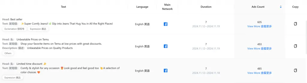 As queried by BigSpy, in the advertising copy of 2024, most of the top-ranked copy used emojis. This indicates that many advertisers have already realized the importance of emojis and added them to the advertising copy to keep up with the trend and shorten the distance from users.