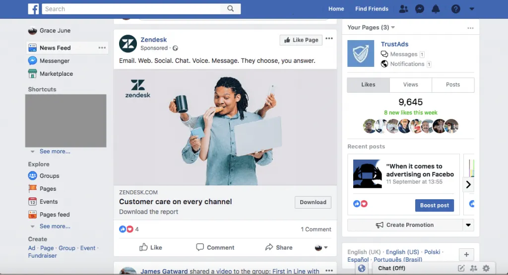 Advantages: You can directly operate Facebook to view targeted advertisements.
