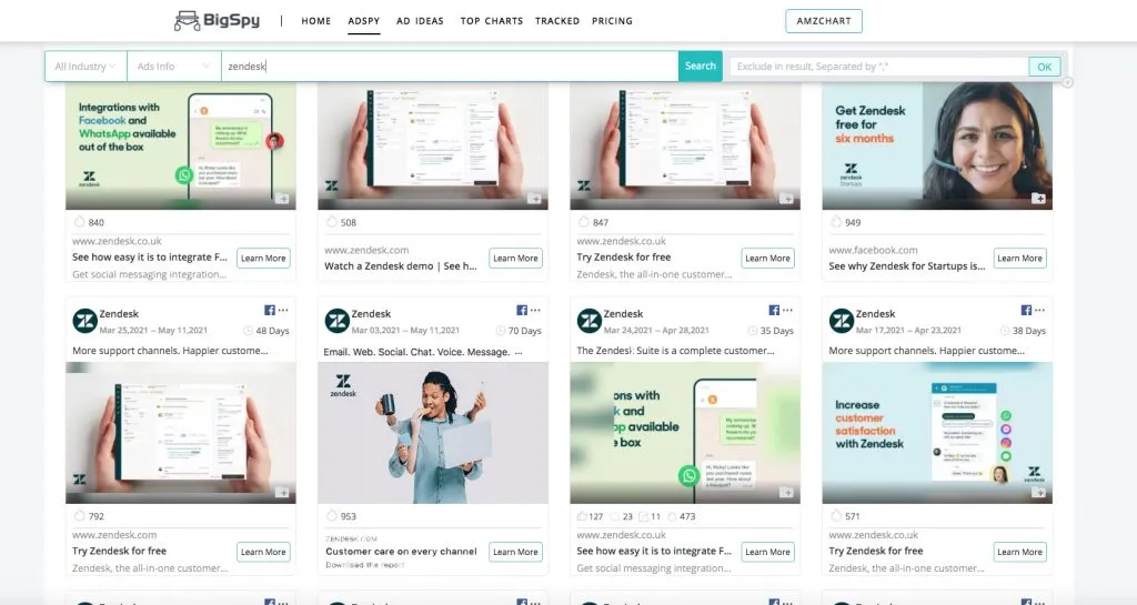 I set up Bigspy's filter content and easily found Zendesk's ads. What's interesting is that I also found a lot of Zendesk ads. They are also helpful to me. Of course, in the process of filter selection, I also learned about Zendesk's many competing products. In contrast, I also got more choices.