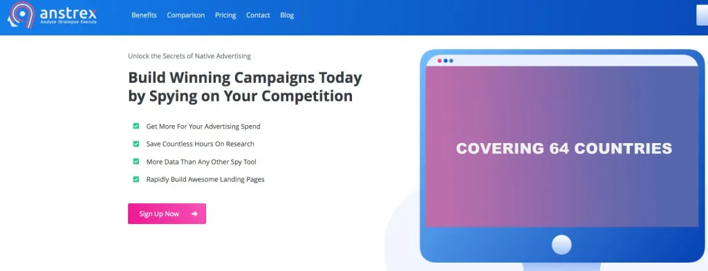 Anstrex is a native spy advertising tool. Anstrex contains data from more than 50 affiliate networks and 17 million ads from more than 90 GEO sites. Filtering options include: affiliate network, country, platform, language, category (local only), tracker and sort filter.